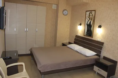 Отдыхали в начале сентября, отель оставил очень хорошее впечатление! Сразу на входе вас встречает милый, живописный дворик, здесь много зелени и цветов, а также несколько обеденных групп под зонтиками.Здесь же и общая кухня со всем необходимым.Для тех, кто предпочитает готовить сам, идеальный вариант. Сам отель оправдывает свое название, на стенах много фото актеров. Для нас самое главное было- это чистота!!! Ежедневная уборка, полотенца и постельное белоснежные, меняются регулярно!!! Пляж в 3 минутах ходьбы, немноголюдно, но есть все водные аттракционы, рядом столовые, кафе на любой вкус и кошелек. Персонал приветливый и доброжелательный, желаю им дальнейшего процветания!!! Рядом ж/ д вокзал, при открытых окнах шумно, но , когда закроешь, то ничего не слышно. Спасибо всему персоналу и руководству за комфортный отдых👍👍👍👍