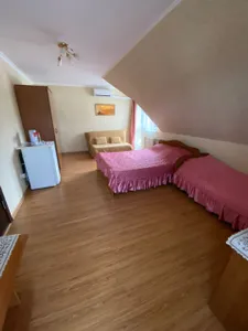 Гостевой дом находится в тихом уютном месте, на горке , на территории есть мангальная зона, полностью оборудованная кухня-столовая для самостоятельного приготовления пищи, есть детская площадка, до моря 5 минут пешком. В каждом номере кондиционер, чайник, телевизор.